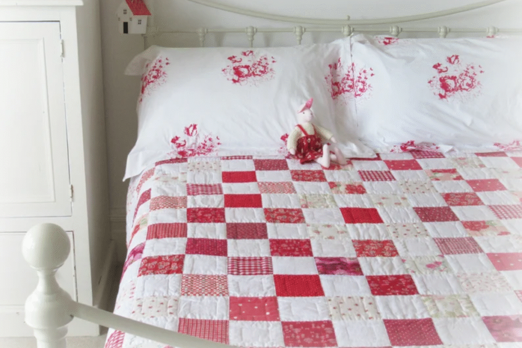 This is another one of those beginner quilt pattern ideas that you want to put in your digital library. Your seeing it in a red and white checkered but you could do it in boy colors or do I really fun just mix and match of scrap Fabrics. This will definitely become one of your go-to quilt patterns because it’s so simple.