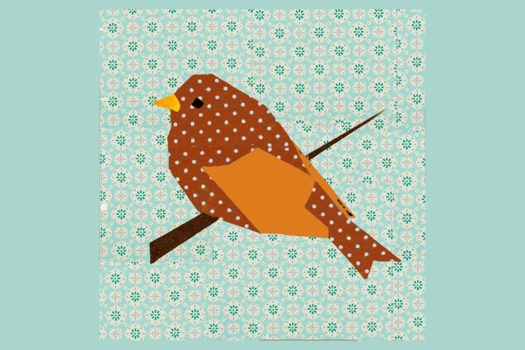 This sweet bird paper piece pattern is so sweet and would be adorable as a mini quilt or any other project you want to create. A bird quilt with all of these patterns would be so fun for someone who loves birds.