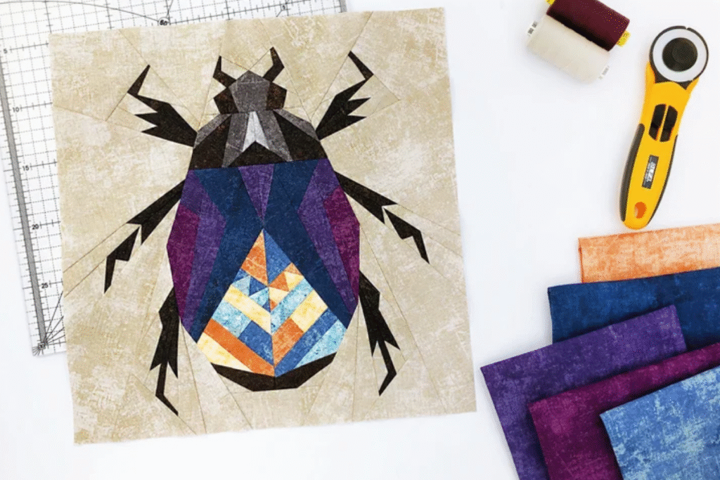 So if you have a kid that loves bugs, then this would be the perfect fabric paper piecing pattern to make. This bug will block idea is super adorable. It is probably more of an intermediate.