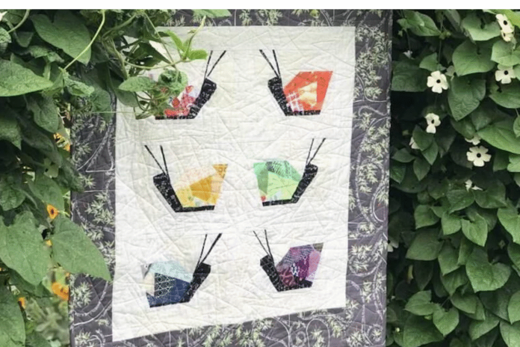 I love how they show you on this pattern how it can look as a quilt. Each snail is a bug Quilt Block idea that you can use all your scrap fabric on. You can create the quilt like it’s shown or make several other projects with it.