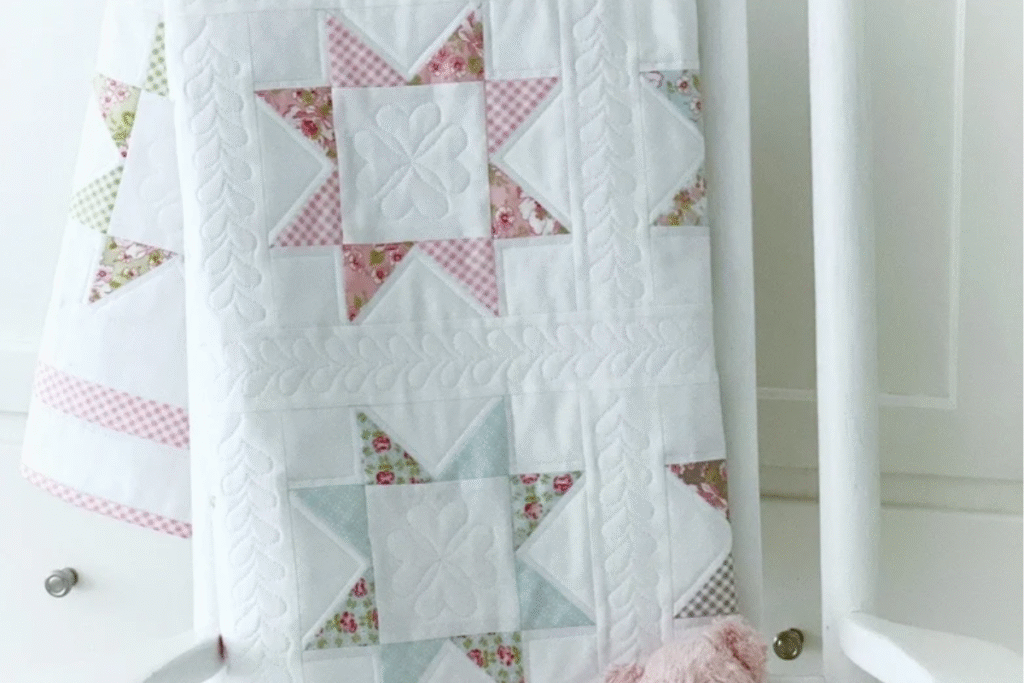Look how sweet this quilt pattern is. There are some smaller pieces to show but once you finish it, it will become a heirloom piece for many generations to come. Such a sweet quilt pattern to give as a baby shower gift.