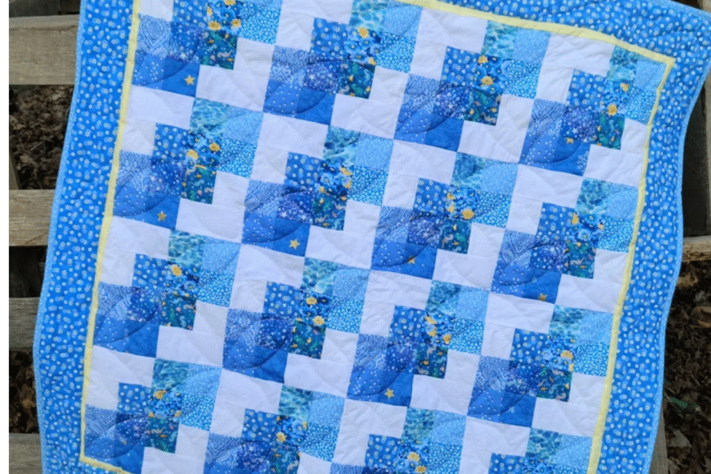 This gorgeous charm pack crib quilt pattern would be so pretty for a baby girl if you did similiar fabric as shown in the photo or use blues and gray for a boy’s quilt. No matter which route you go down, you can’t go wrong.