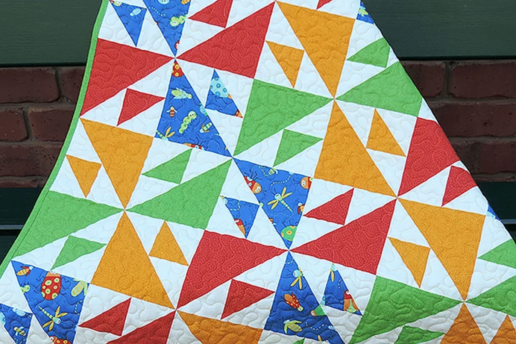 This sweet crib quilt pattern is show in primary colors but simply change the fabric colors will completely change the look of the quilt. This is a great beginner quilt pattern or a quick and easy project if you have been quilting for a while.