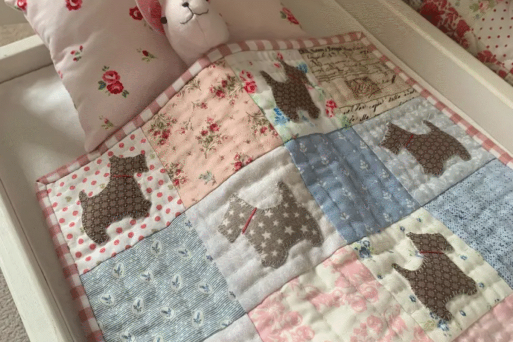 Look at this sweet little dog quilt patterns. She’s made it for a dog quilt or maybe even a really small baby quilt. You can always add to it because it’s so easy to make and create a bigger quilt.