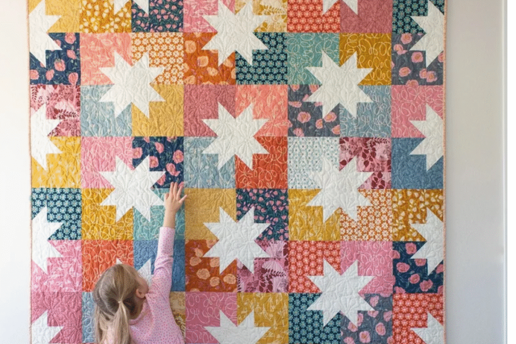 Here is another Fat quarter-friendly quilt pattern that is available in five different sizes. I love these foot patterns because you can put them in your library and when you need a particular quilt to make for your home or to give us a gift then you have a ton of choices to choose from.