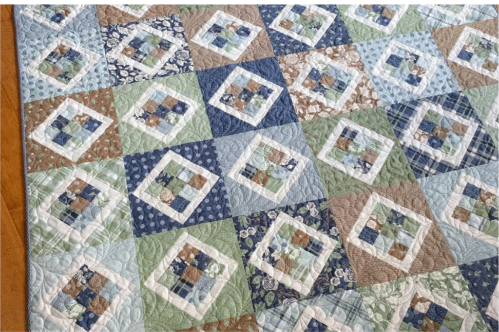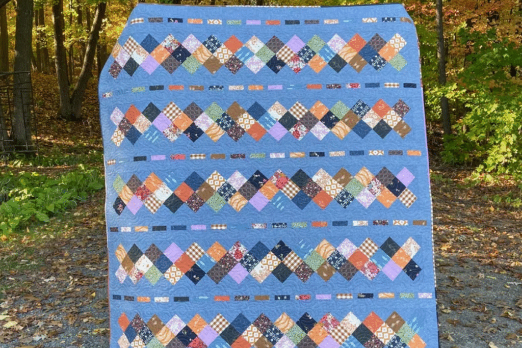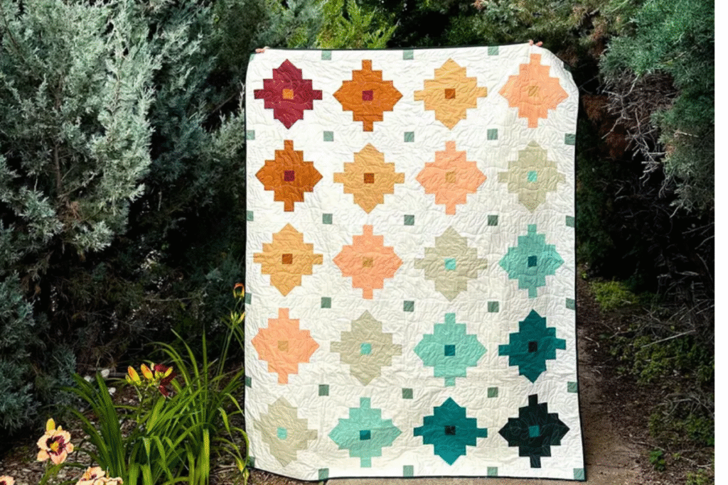 I love this sweet little pivot. It takes a 9 patch quilt pattern and adds a large fat quarter piece. It’s such a fun pattern that is perfect for an experienced quilter who loves unique pattern ideas.