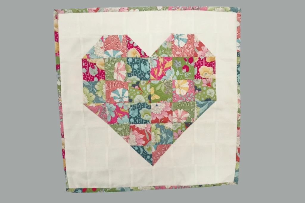 You can see here that they made a mini quilt and it turned out so cute. Grab all those scrap fabrics and make this easy heart quilt block. If you are new to fabric paper piecing this is a good one to start with.