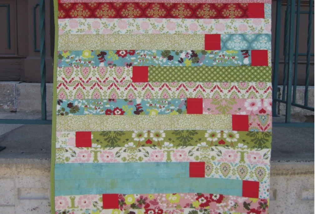 This sweet jelly roll baby quilt pattern is a sweet pattern. You can also get Jelly roll bundles from the Fat quarter shop. Their fabrics are always great to work with.