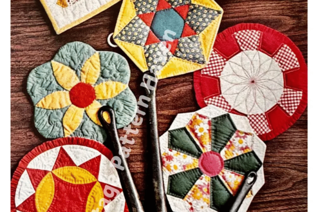 This has to be the cutest kitchen quilt pattern. You could add some binding or make it into a potholder using the correct material in the middle. You can easily use your scrap fabric and create this adorable masterpiece.