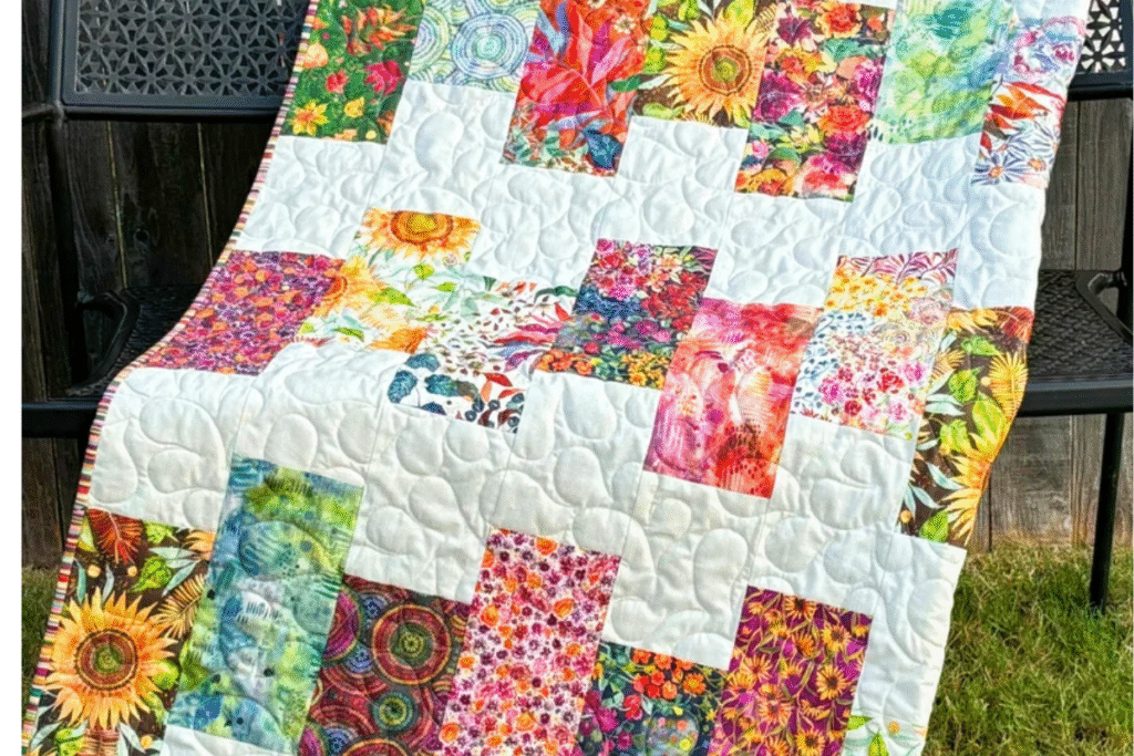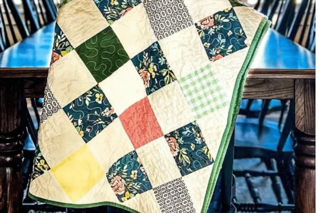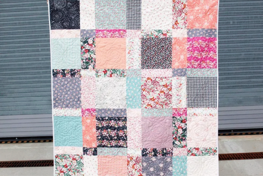 Whether you’re a beginner quilter or just looking for a really simple quilt pattern this beginner quilt pattern is perfect for that. Such a cute way to use that either scrap Fabrics or to get a really cute layer cake bundle. The Baby Quilt measures 42.5″ x 48”