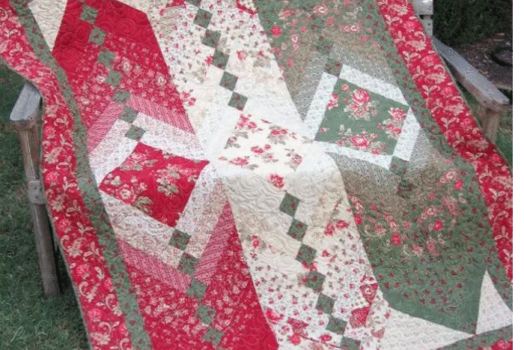 This layer cake quilt pattern comes in three different sizes table topper, crib, and twin. However, if you’re wanting a larger quilt just simply figure out the size that you’re wanting and just add more down the sides and up the top and bottom.