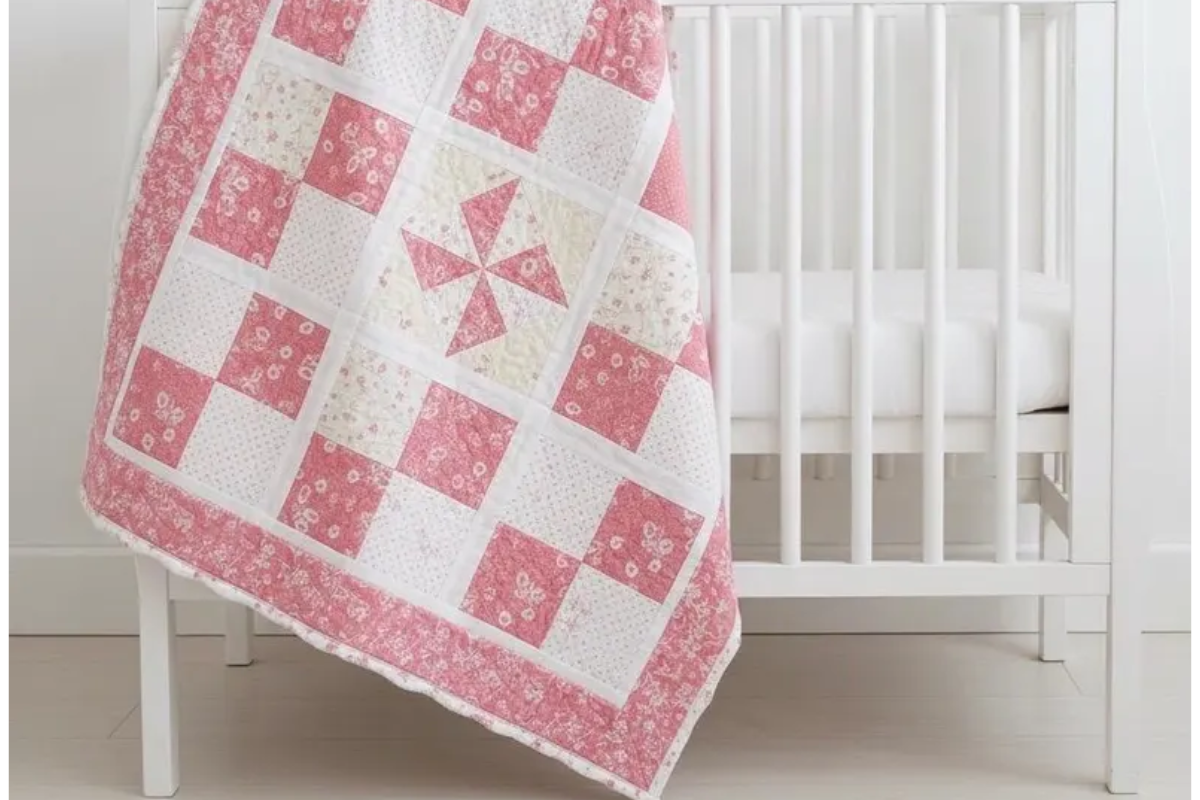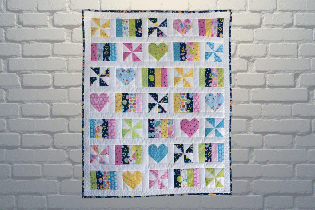 This adorable hearts and pinwheel quilt baby pattern is perfect for a little girl’s Nursery. You can definitely customize the colors for the nursery decor. It makes such a great baby shower gift or donate it to a charity or nonprofit that can use them.