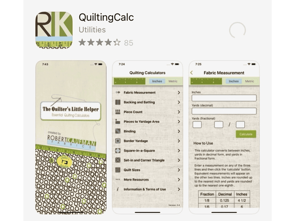 A lot of quilters love this app. It’s great to use while you are at a store looking at fabric. Download it on your digital devices.