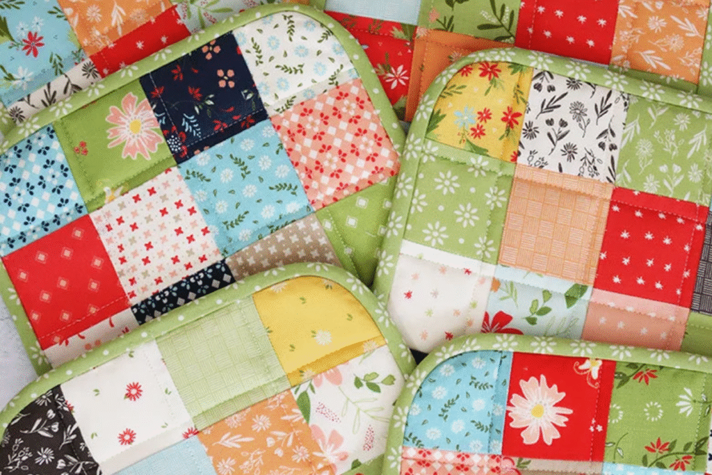If you consider yourself a beginner so or quilter, then this pattern would be perfect for you to get started with. Whether you buy pre-cut fabric bundles or cut your own this quilted pot holder pattern is super simple. If you’re somebody that has a ton of scrap fabric these would be perfect to use that on and honestly they make great gifts.