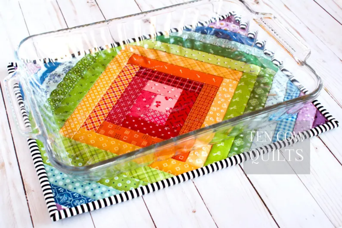 If you consider yourself a beginner so or quilter, then this pattern would be perfect for you to get started with. Whether you buy pre-cut fabric bundles or cut your own this quilted pot holder pattern is super simple. If you’re somebody that has a ton of scrap fabric these would be perfect to use that on and honestly they make great gifts.